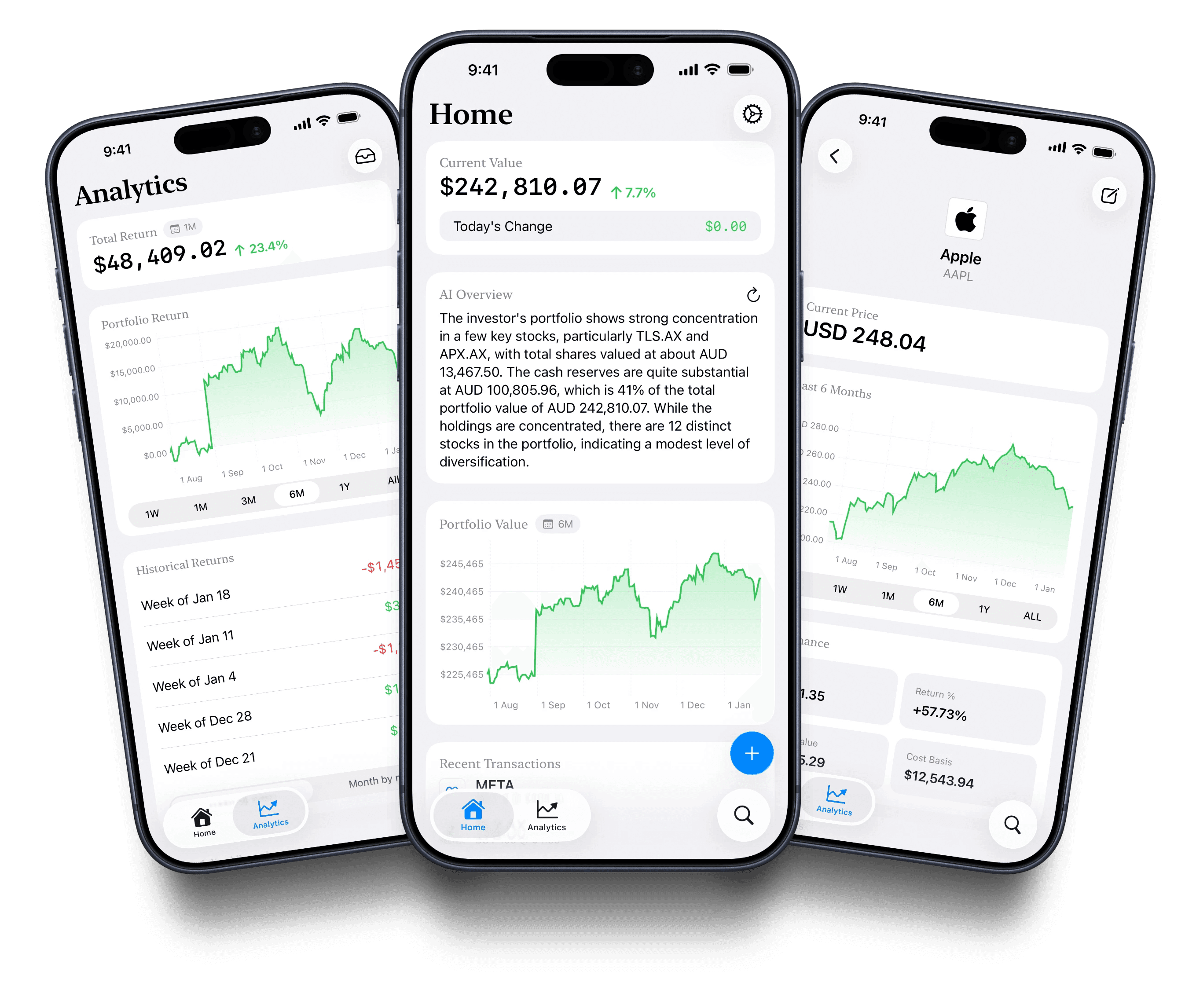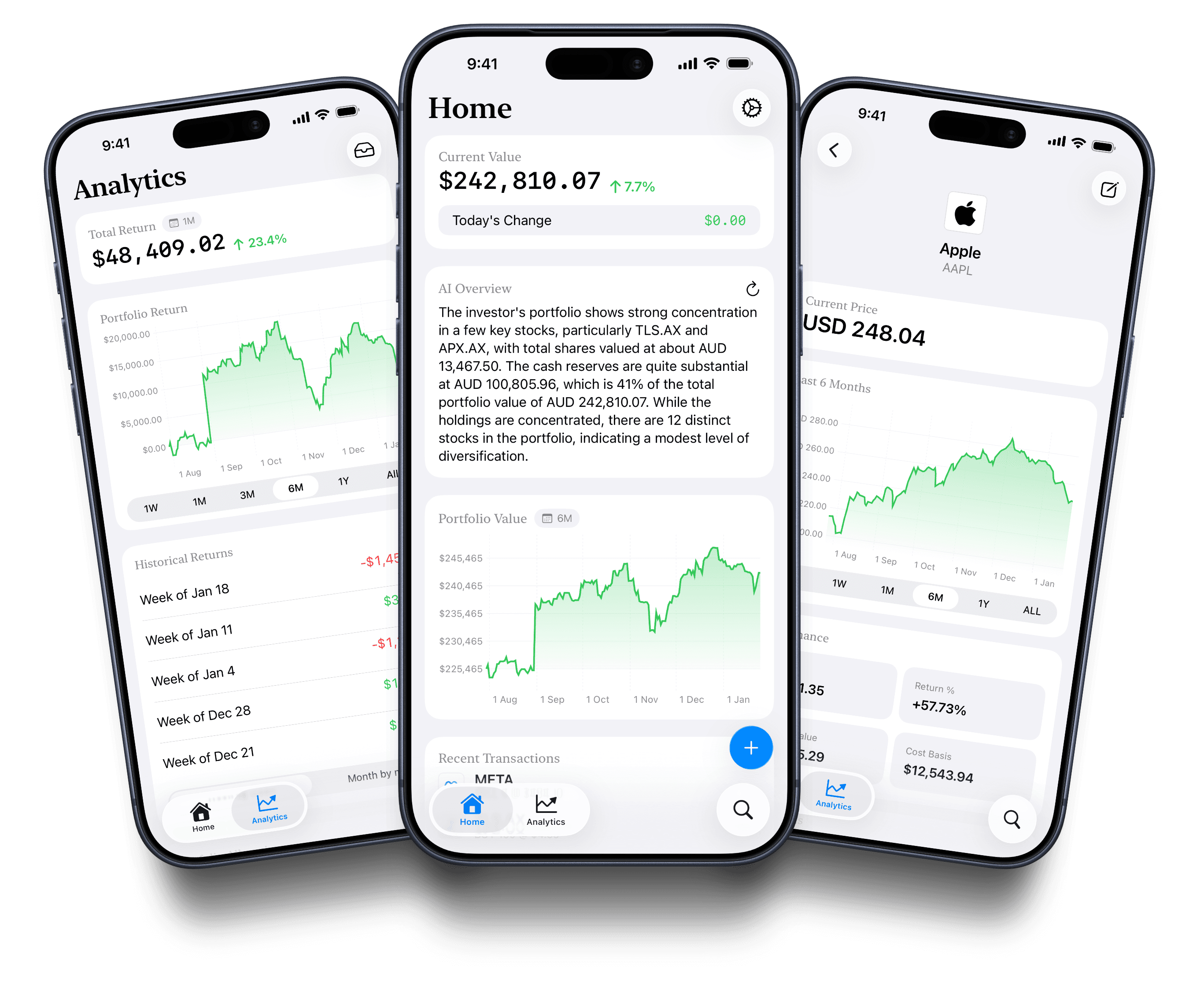 Understand your portfolio at a glance with on-device summaries that highlight performance, trends, and key changes — all without cloud processing.